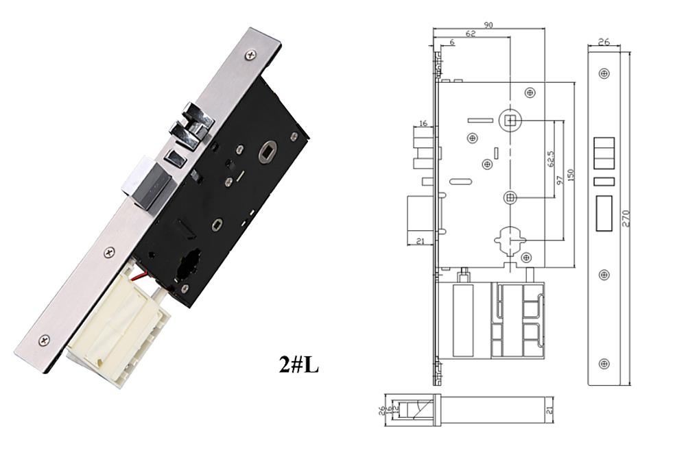 Mortise: 2#L, Width: 26mm. Suitable for door thickness 38-70mm. Option mortise: 1#L