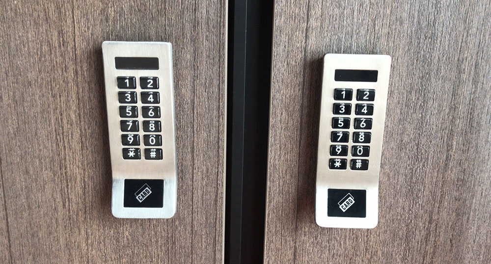 Set permanent code: Touch management card 1 time, lock is open, blue light flashes, press * during the flash, enter a code and press #, 2 “di” sounds, done. (The permanent code can’t be set if guest card is already set)
