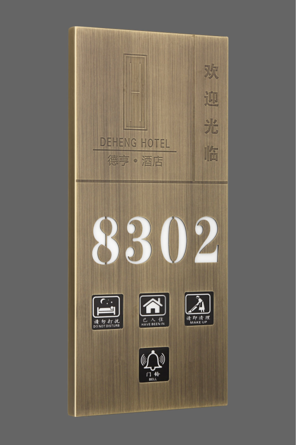 Function: LOGO、room number、no disturb、make up 、check-in 、doorbell