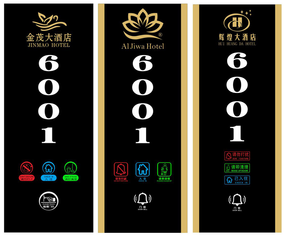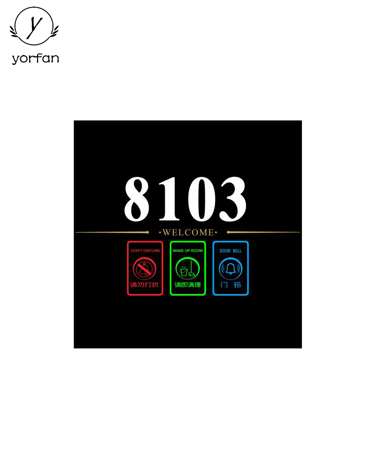 Function: LOGO、room number、no disturb、make up 、check-in 、doorbell