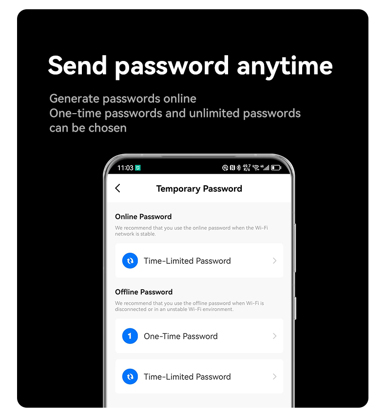 Unlock: Mifare card+password+fingerprint+wifi(Tuya)+key